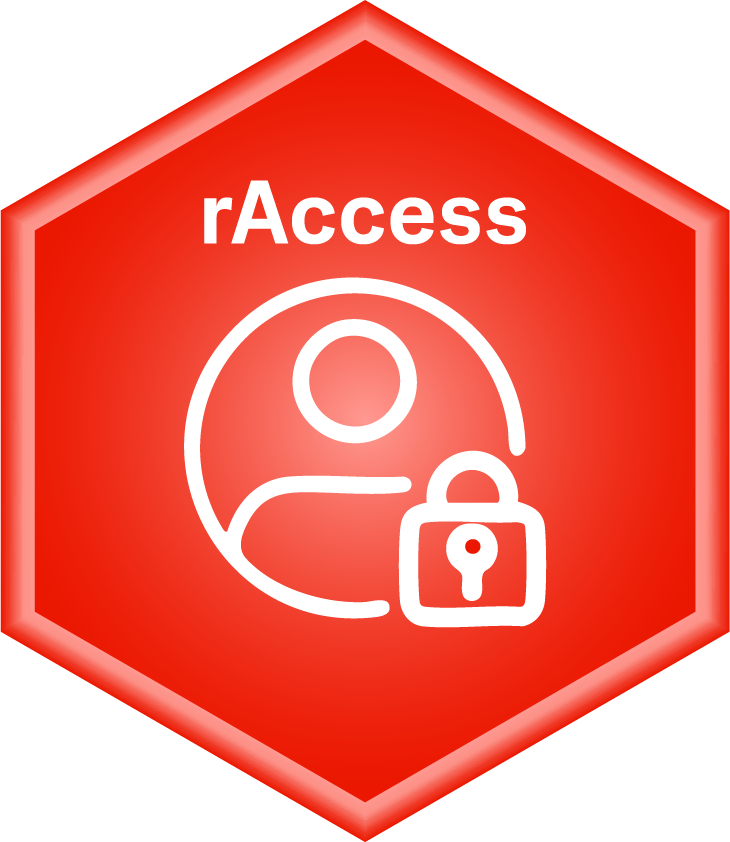 rAccess is an R package that offers a flexible framework for in-app access control, allowing local and/or remote storage, organization, and retrieval of access lists. It features a pluggable shiny module to create and manage access lists for individual Shiny applications. It is built on top of the Posit Connect Access Management, which means no credentials are collected or stored.