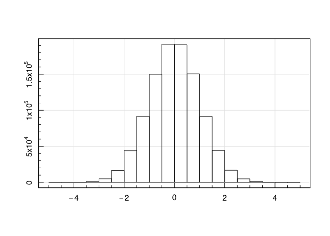 maghist(rnorm(1e6), log='y', grid=TRUE)